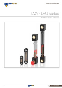 Visual oil level indicators. LVA range with wheelbase up to 254 mm, LVU range with wheelbase up to 2000 mm possibility to apply a drain valve, to drop the oil.